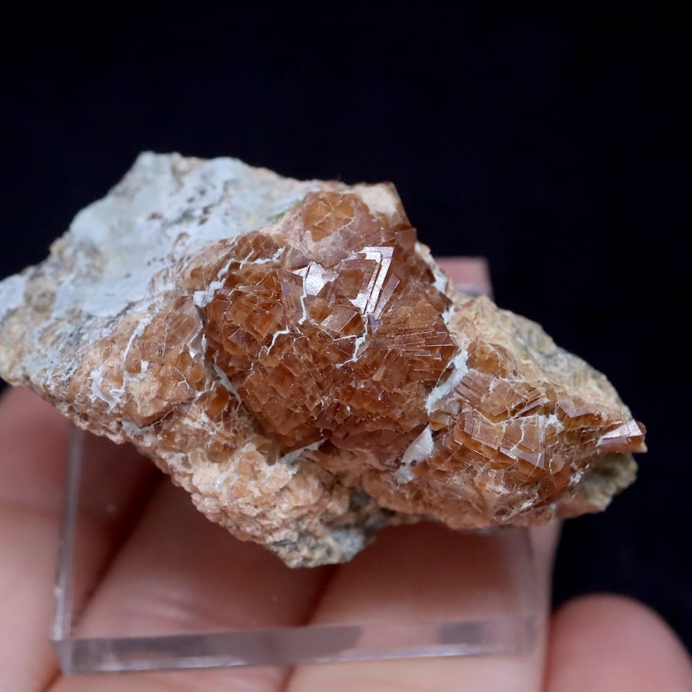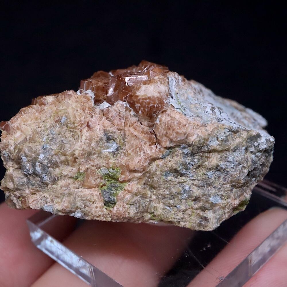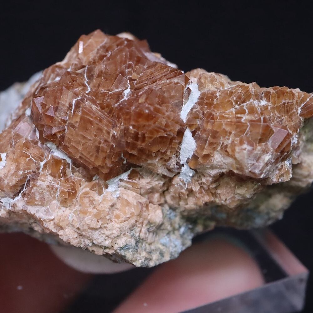 光を当てて撮影しており、ガーネット部分のブラウンがよく見えますが