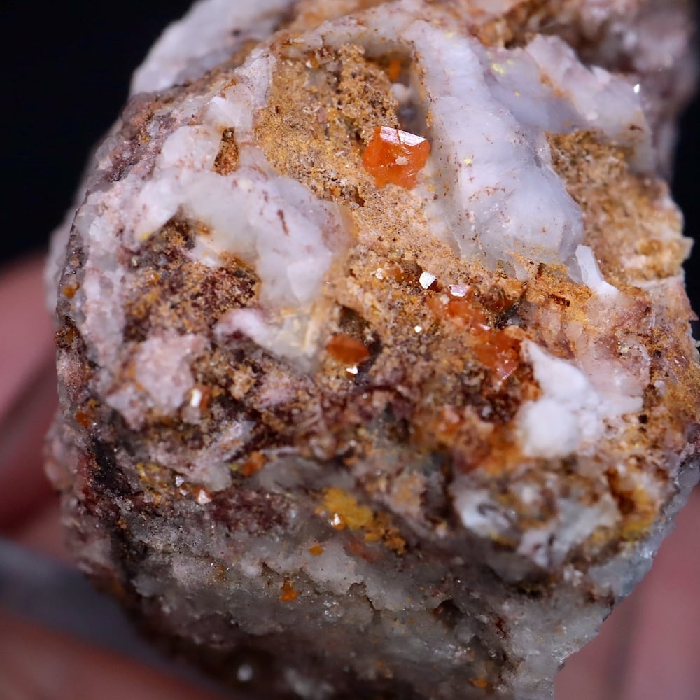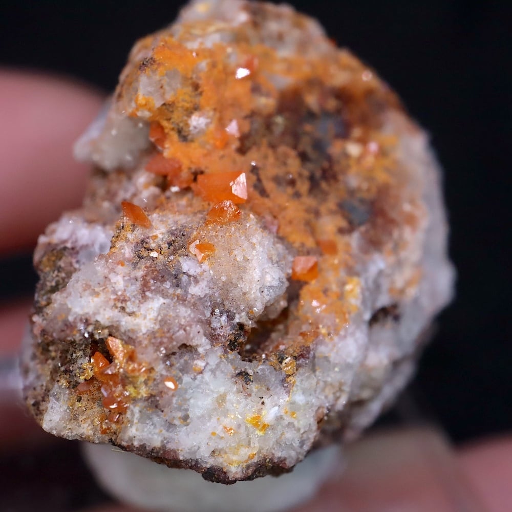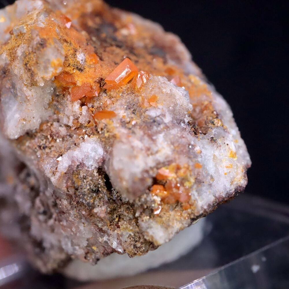 キャラメルオレンジのウルフェナイト結晶が見えます。