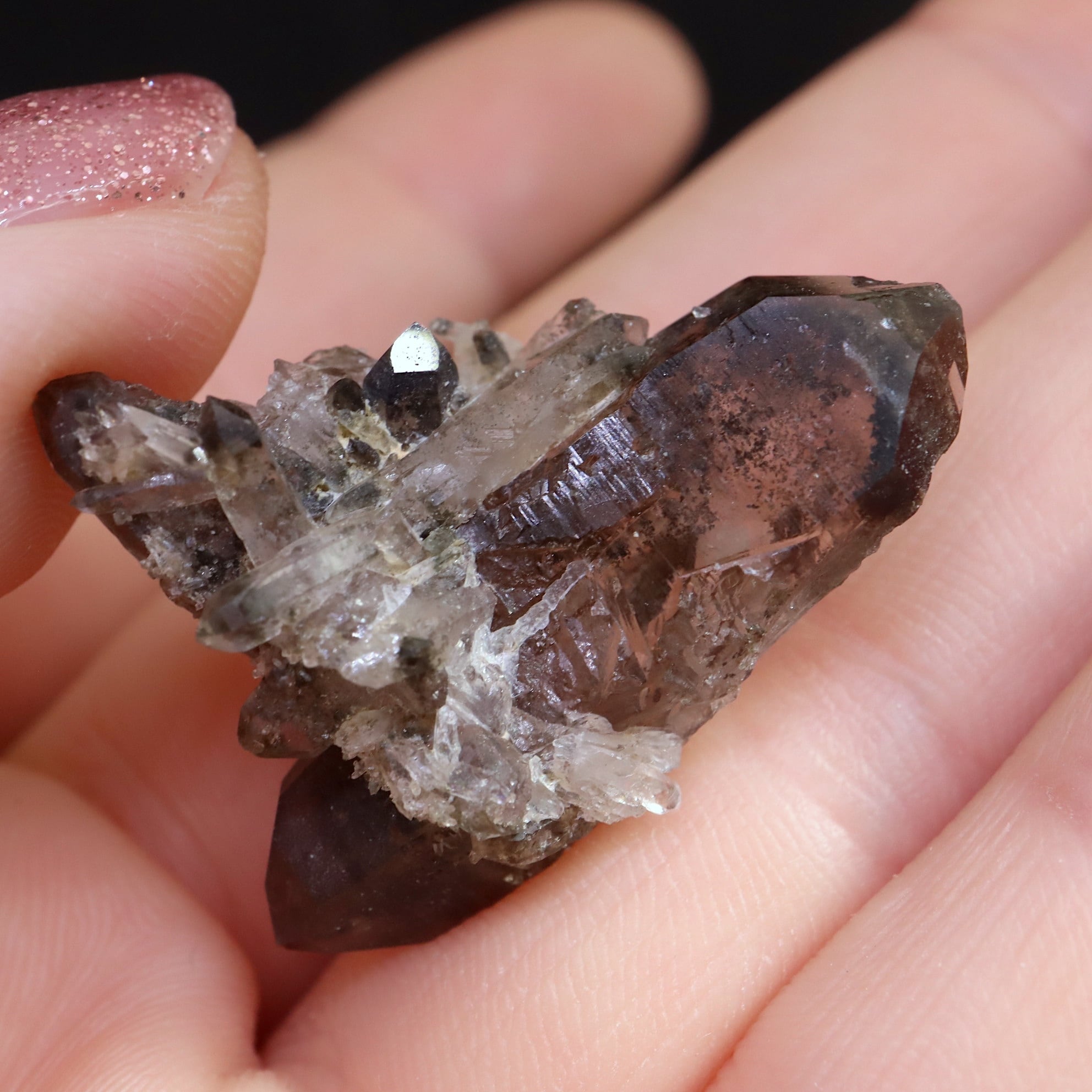 スモーキーとクォーツのミックスで透明度がある部分もあります。