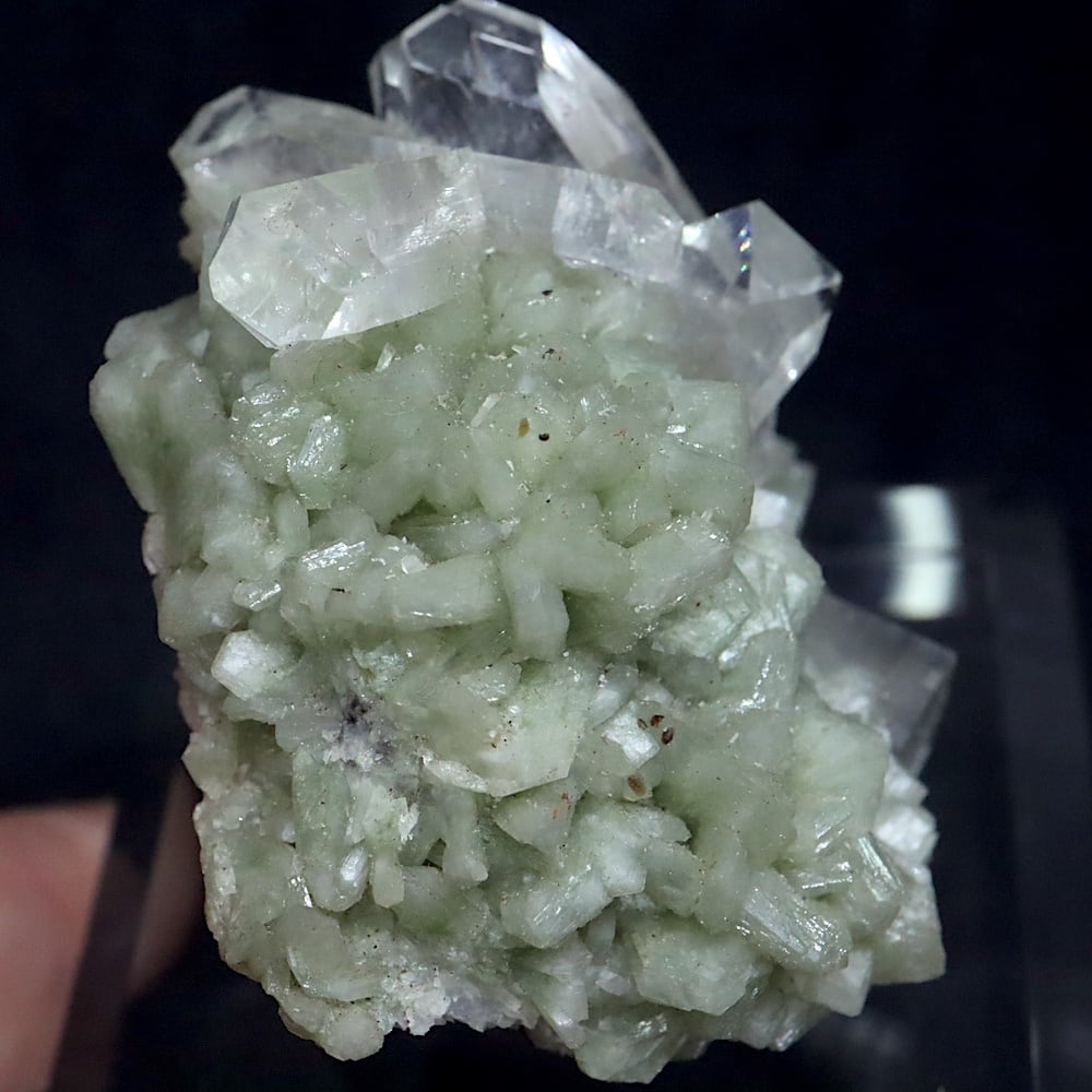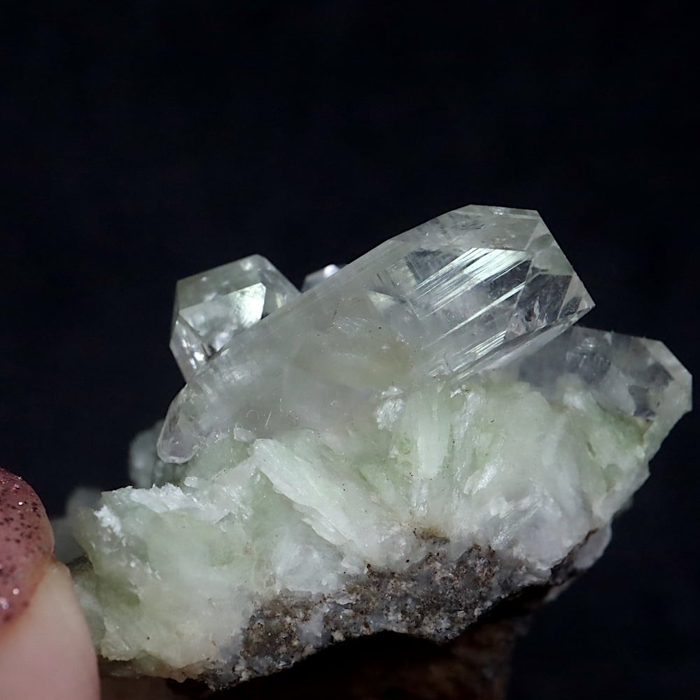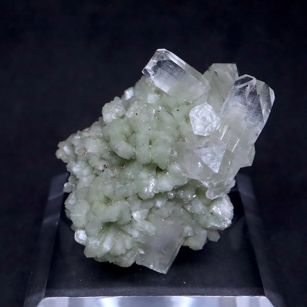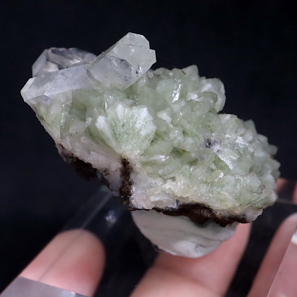 渋みのある淡いグリーンに生えるクリアアポフィライトが