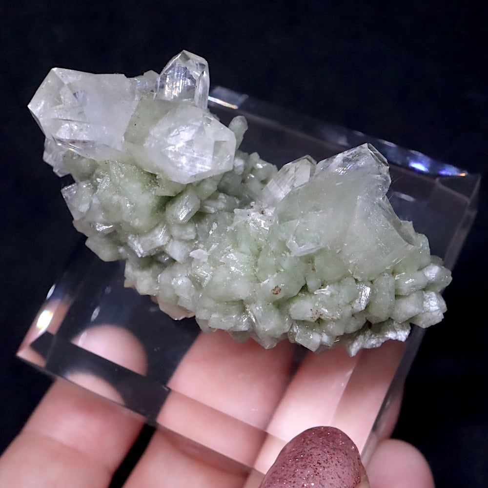 渋みのある淡いグリーンに生えるクリアアポフィライトが