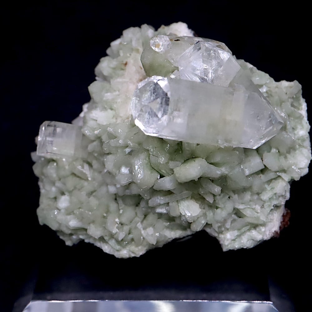 渋みのある淡いグリーンに生えるクリアアポフィライトが