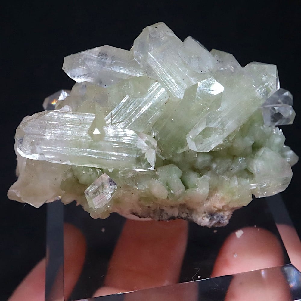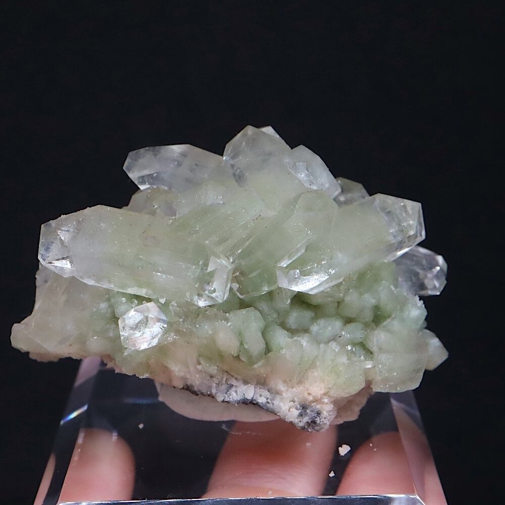 渋みのある淡いグリーンに生えるクリアアポフィライトが