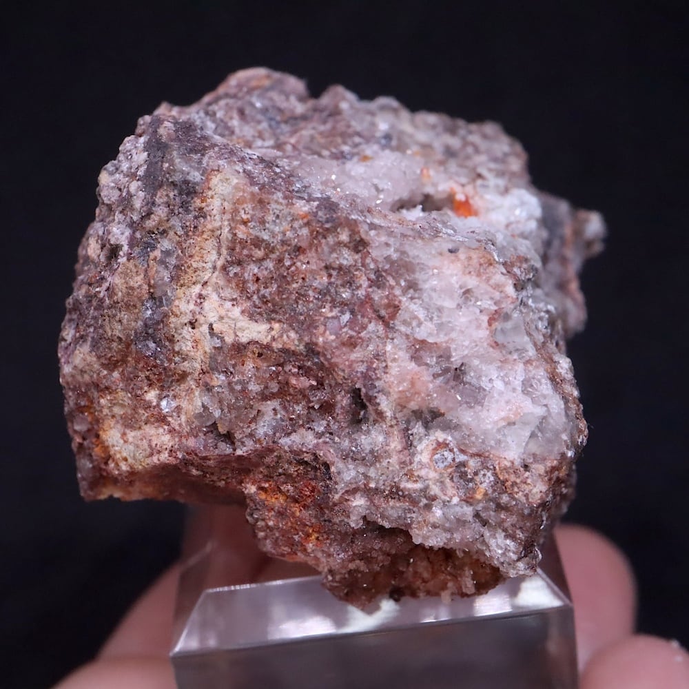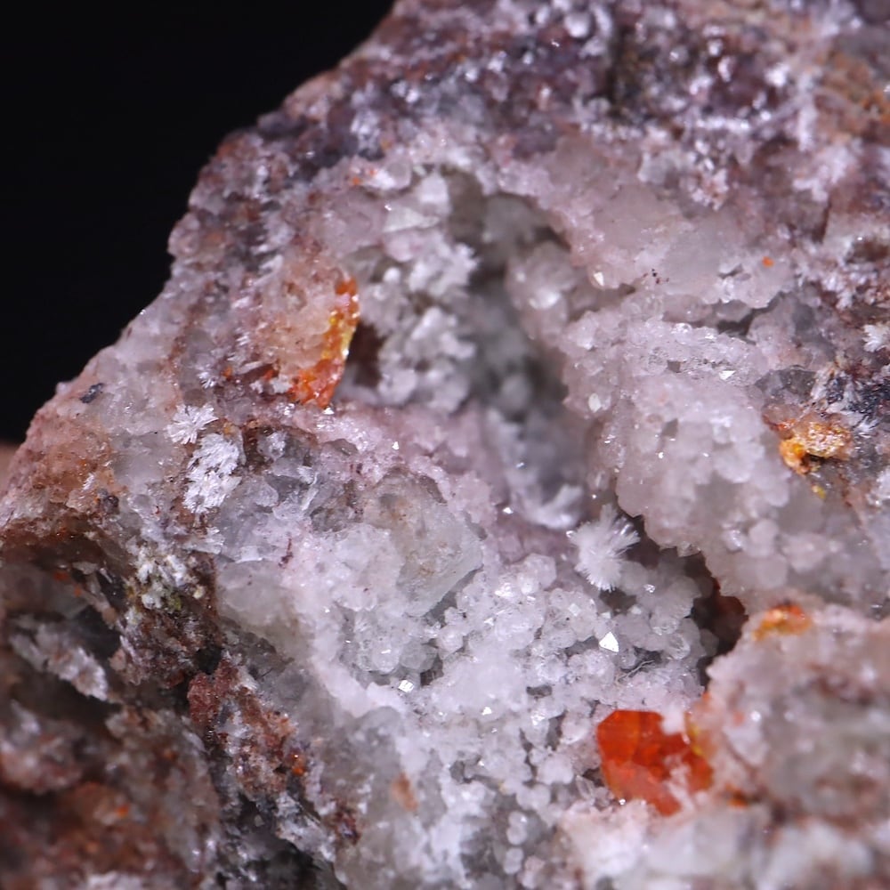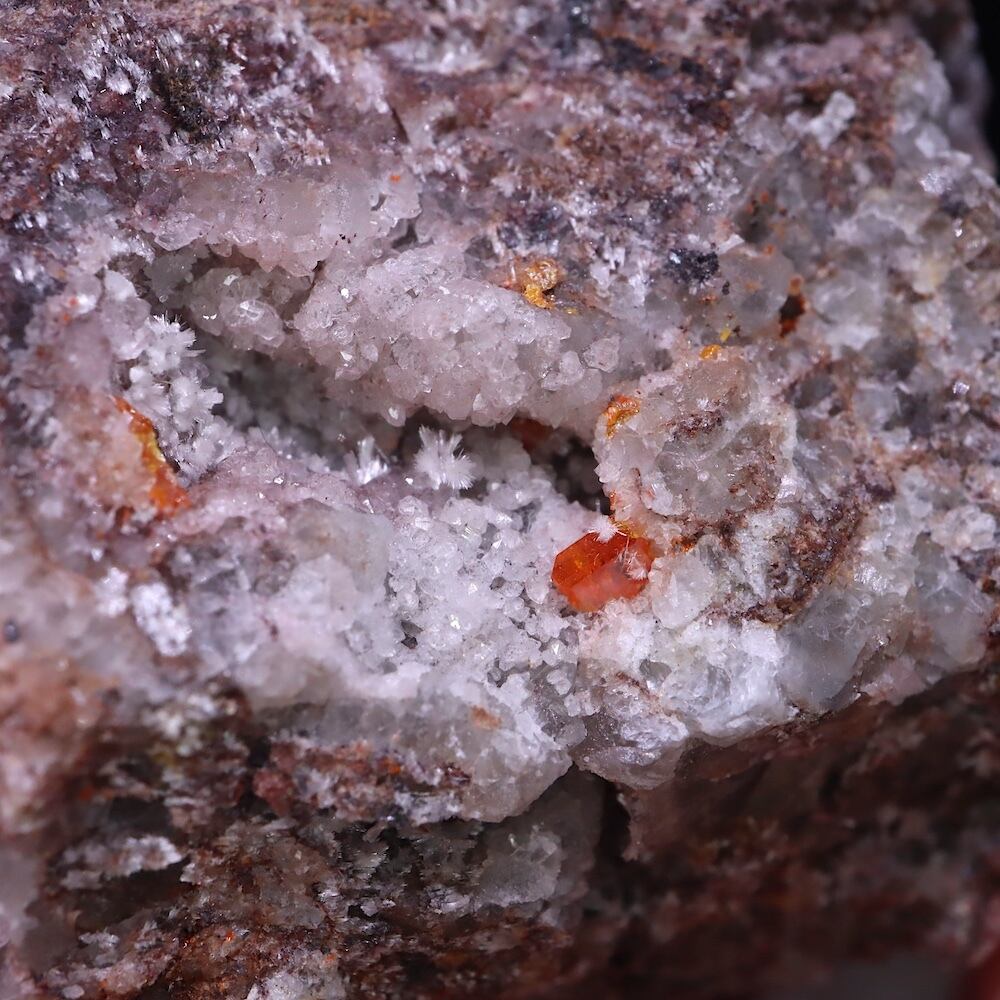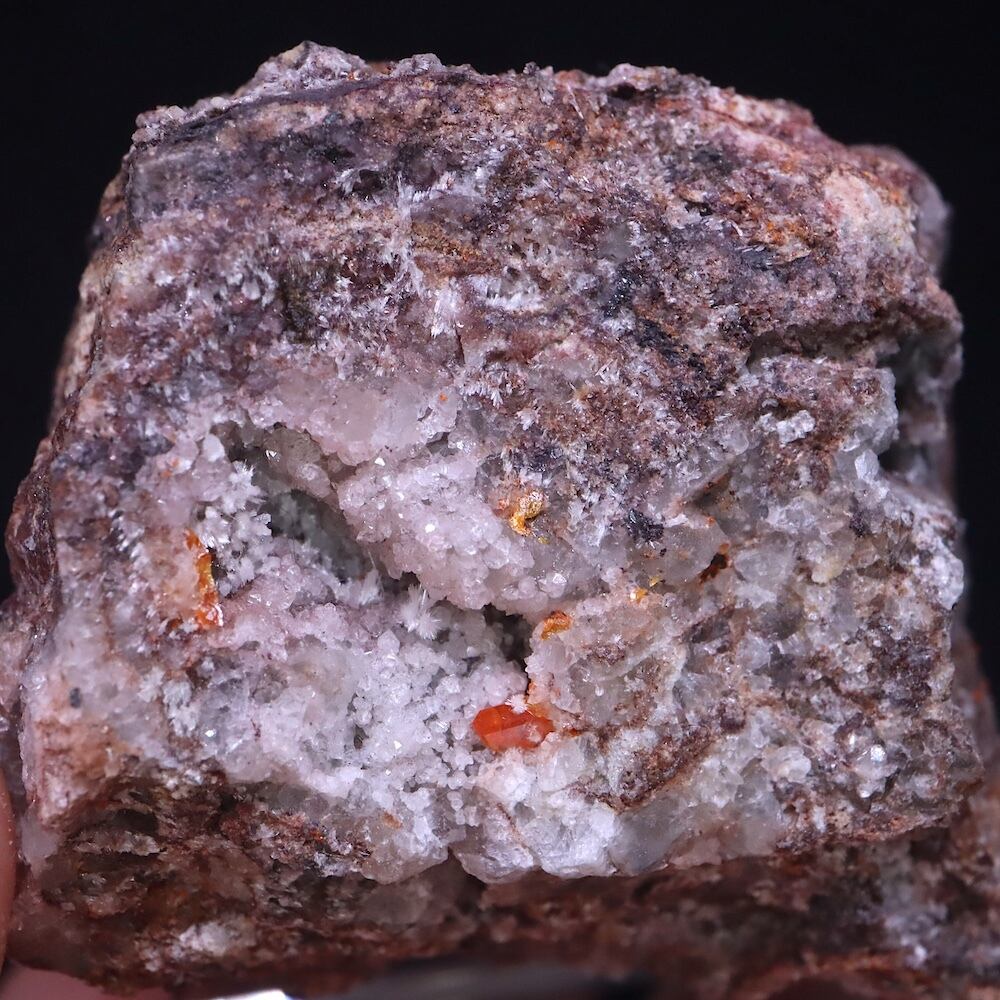小さくかわいいオレンジのウルフェナイト結晶が見えます。