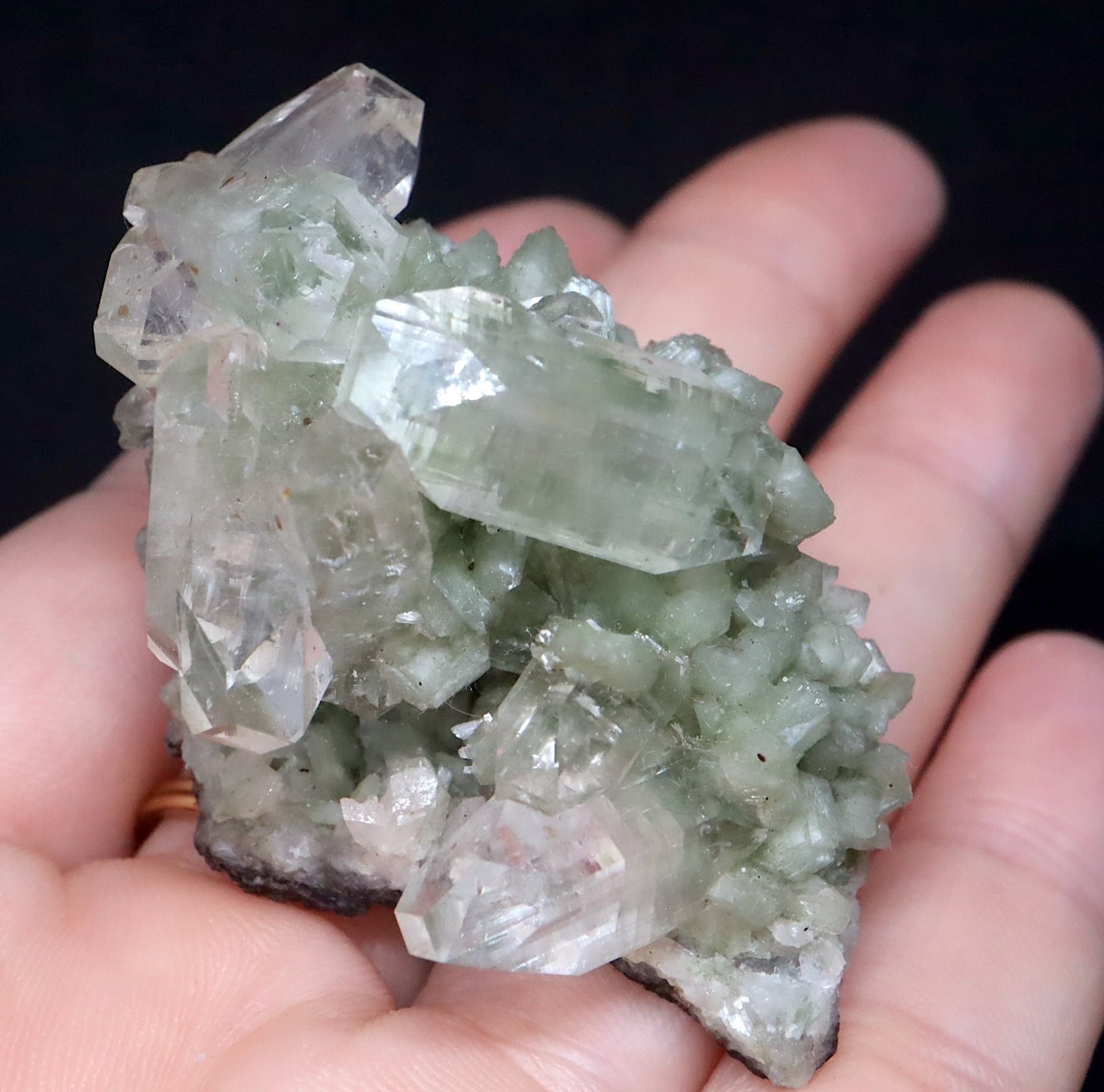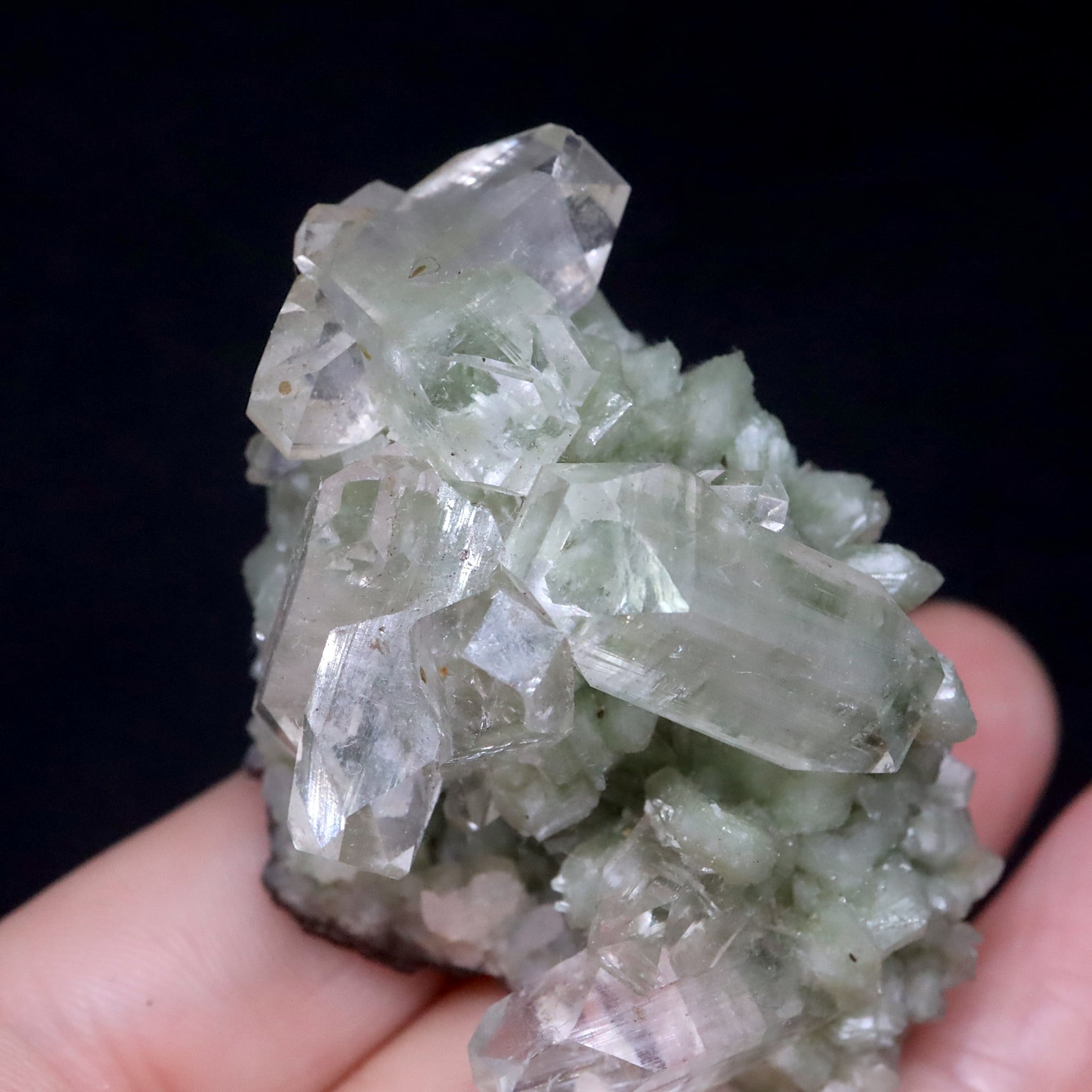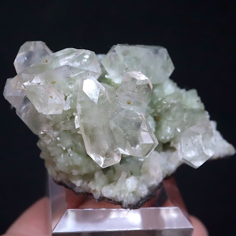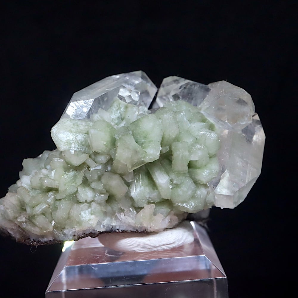 渋みのある淡いグリーンに生えるクリアアポフィライトが