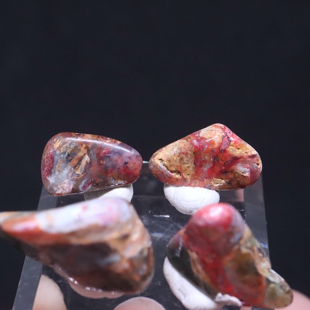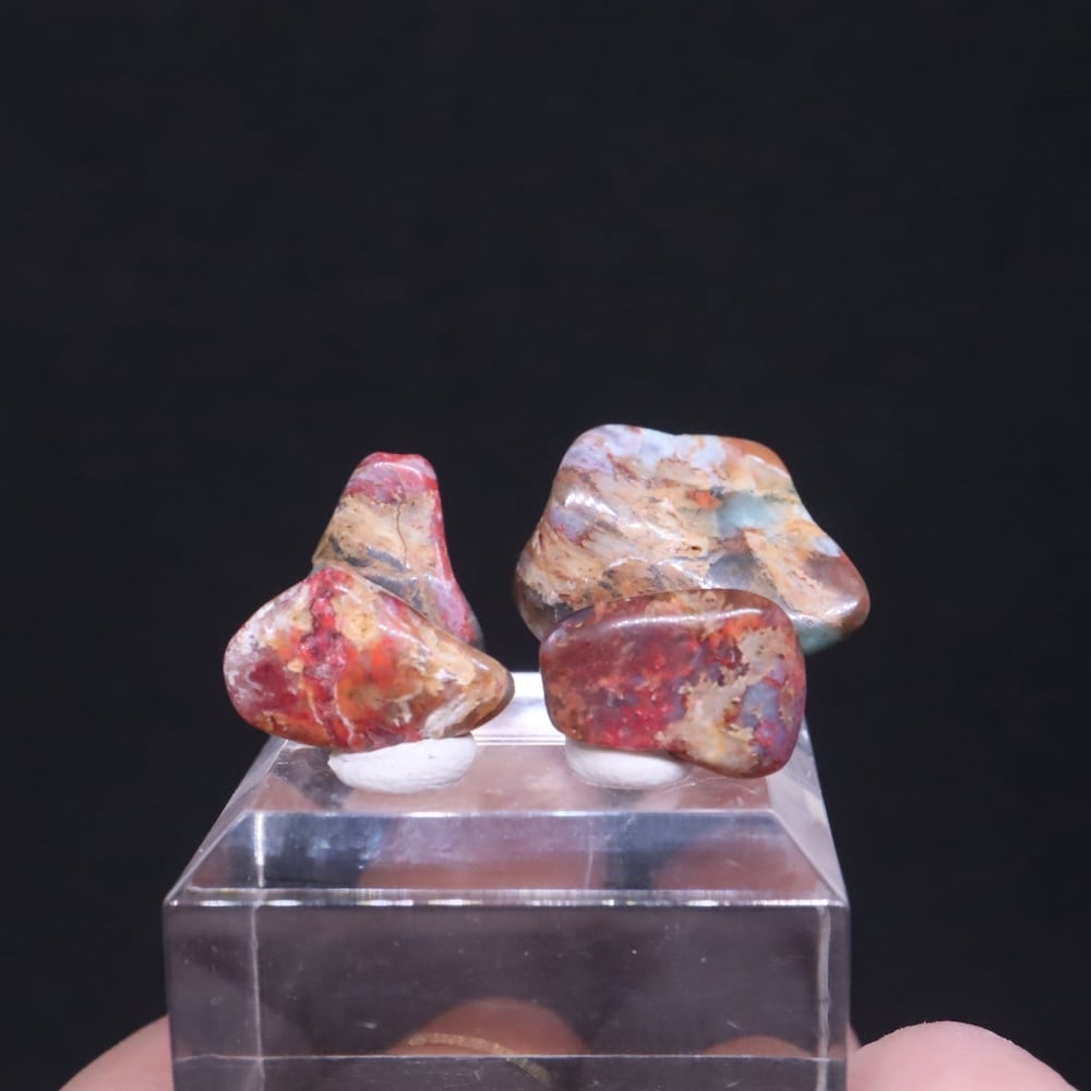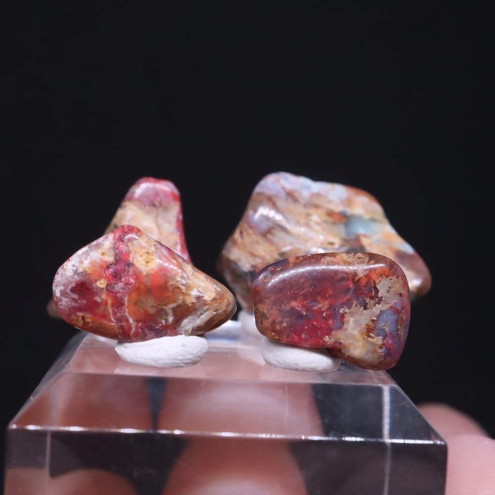 こちらはシナバー(辰砂)多めの小さな研磨石4つセット!