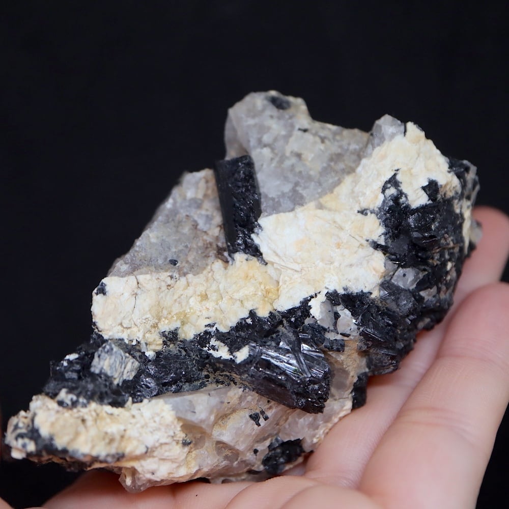 ブラックトルマリンで柱状結晶であったり、条線が見られることが特徴