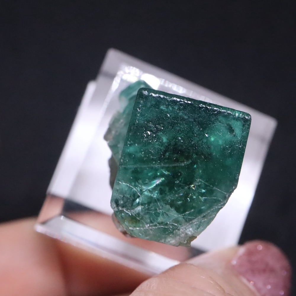 こちらはイギリス、ダイアナマリア鉱山の最近新たに見つかったポケット(鉱脈や岩の隙間に鉱物の結晶が集中している箇所)、その名もポケット42!から採掘されたフローライト!