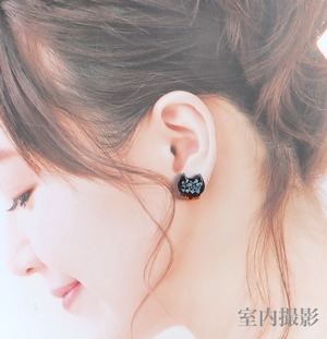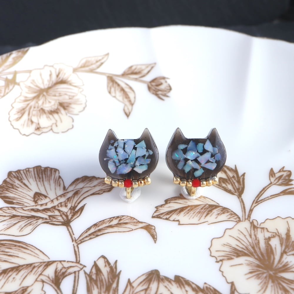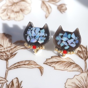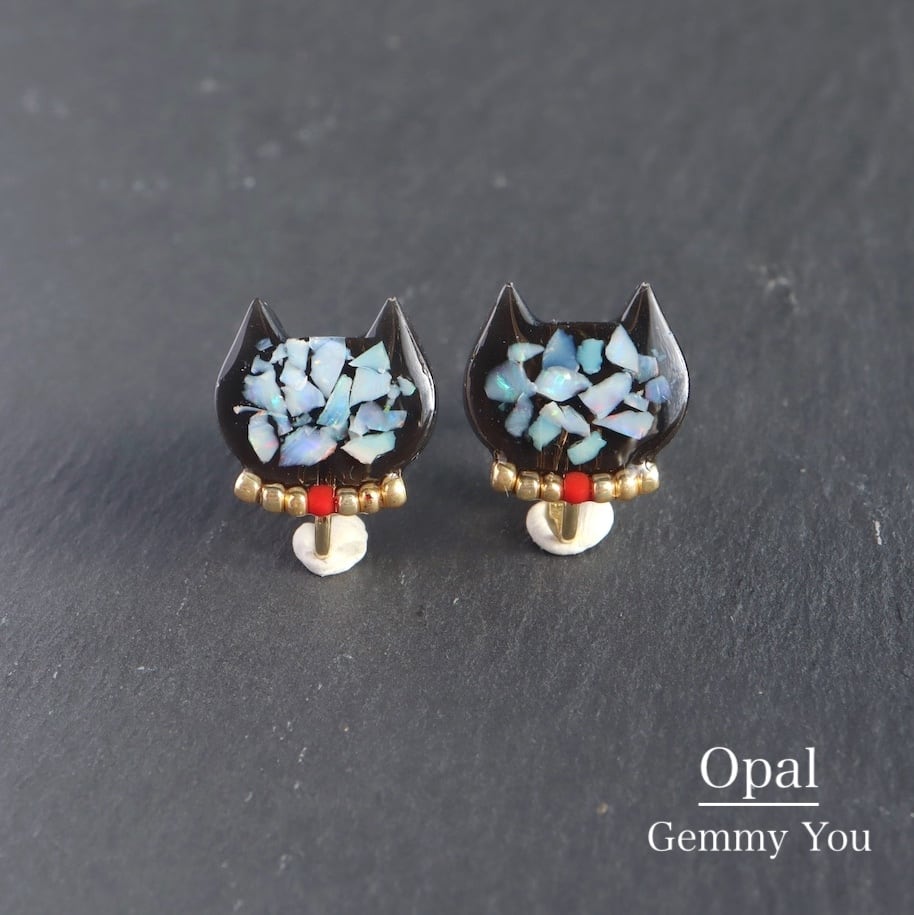 オパール にゃんこ 猫 BLACK イヤリング ブラック 天然石 原石