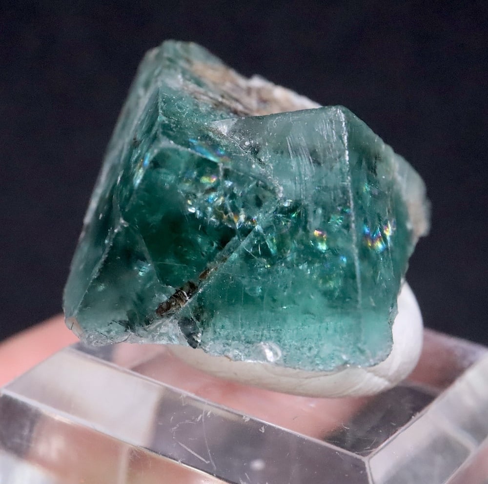 こちらはイギリス、ダイアナマリア鉱山の最近新たに見つかったポケット(鉱脈や岩の隙間に鉱物の結晶が集中している箇所)、その名もポケット42!から採掘されたフローライト!