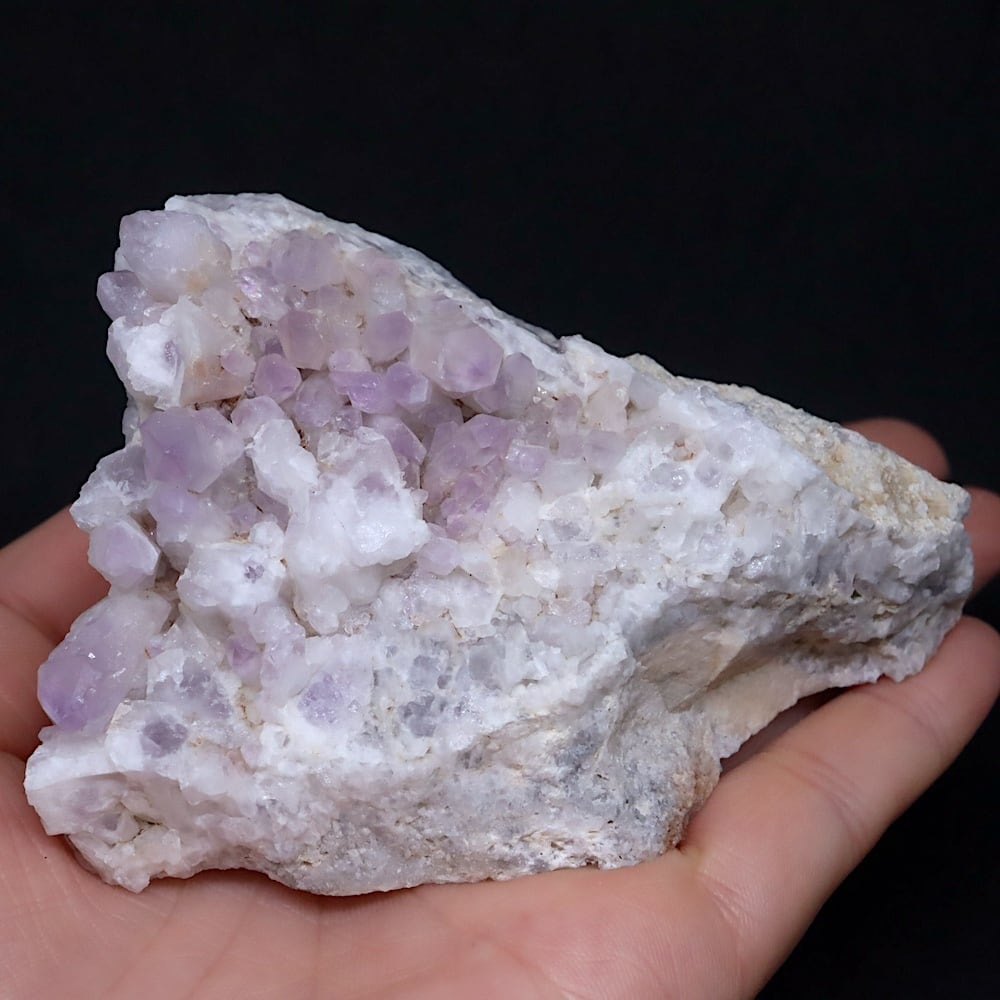 こちらは優しい薄いパープルの色味結晶、母岩付き