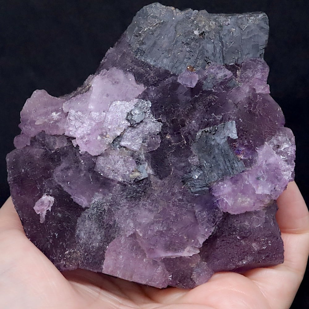 濃いパープルのフローライトとガレナ(方鉛鉱)のコンビ。