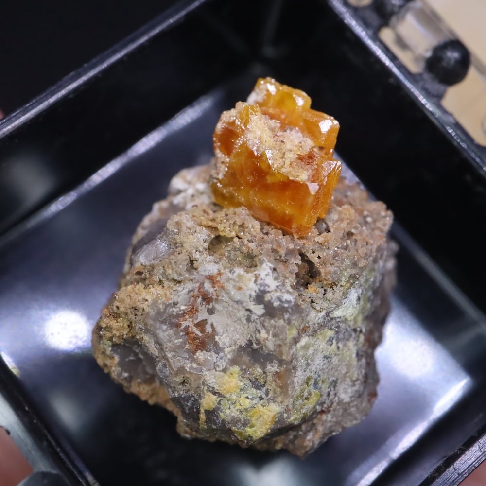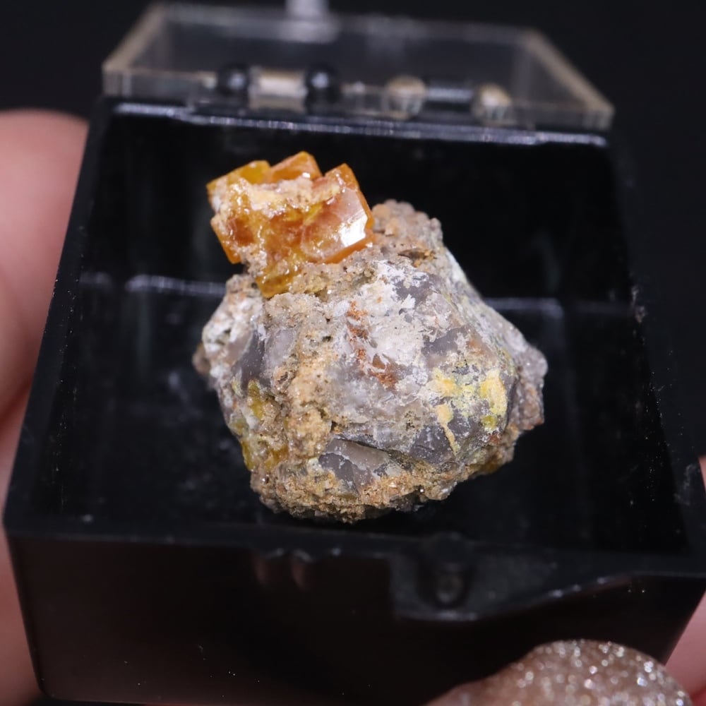 約3cmの英語表記ラベル付きケースに入った標本です。