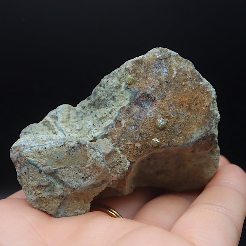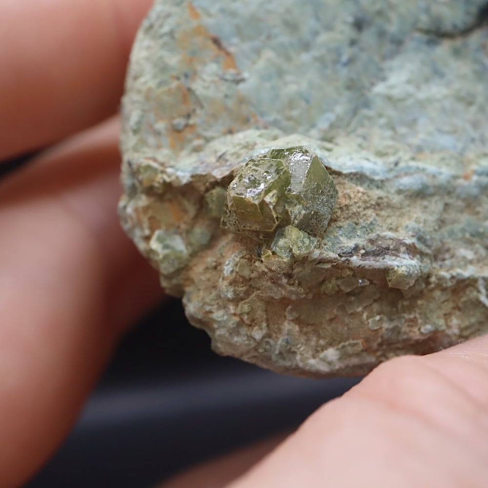 反対側には風化した感じの結晶や小粒結晶も見えます