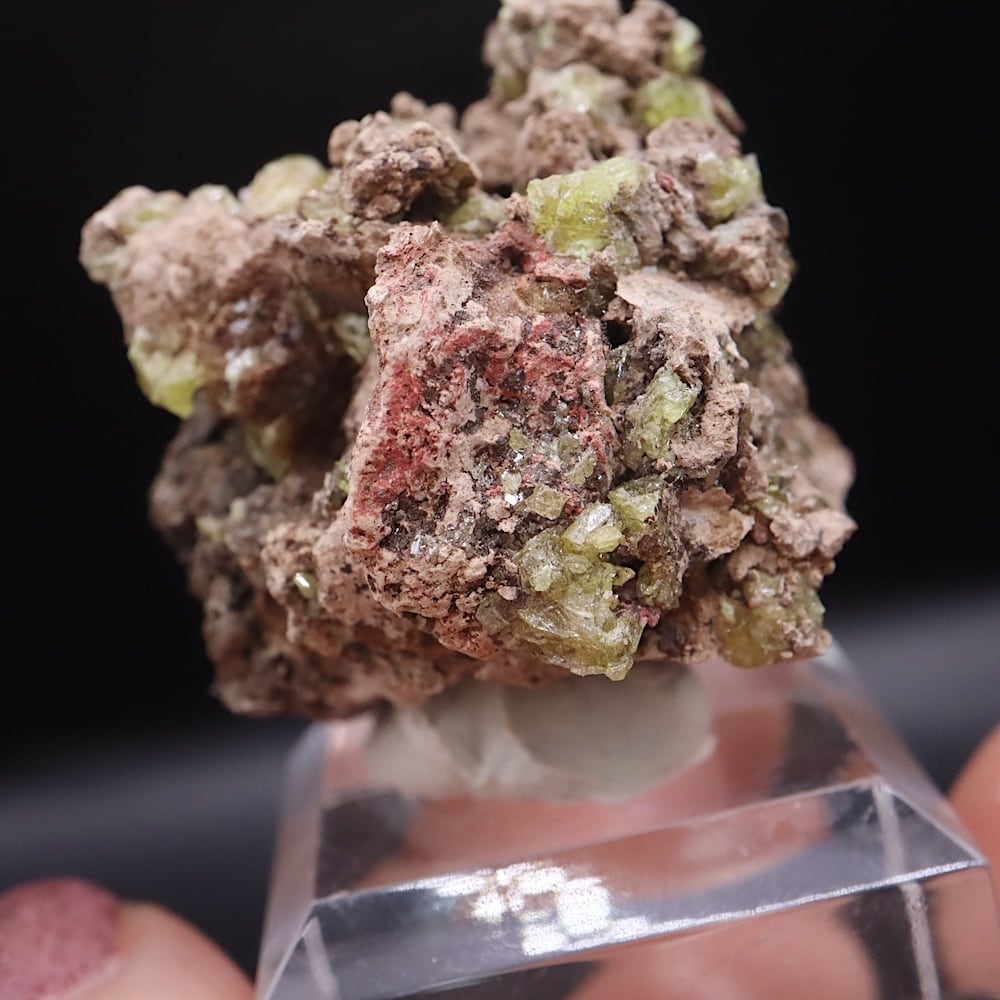 黄緑色の輝きがある結晶。