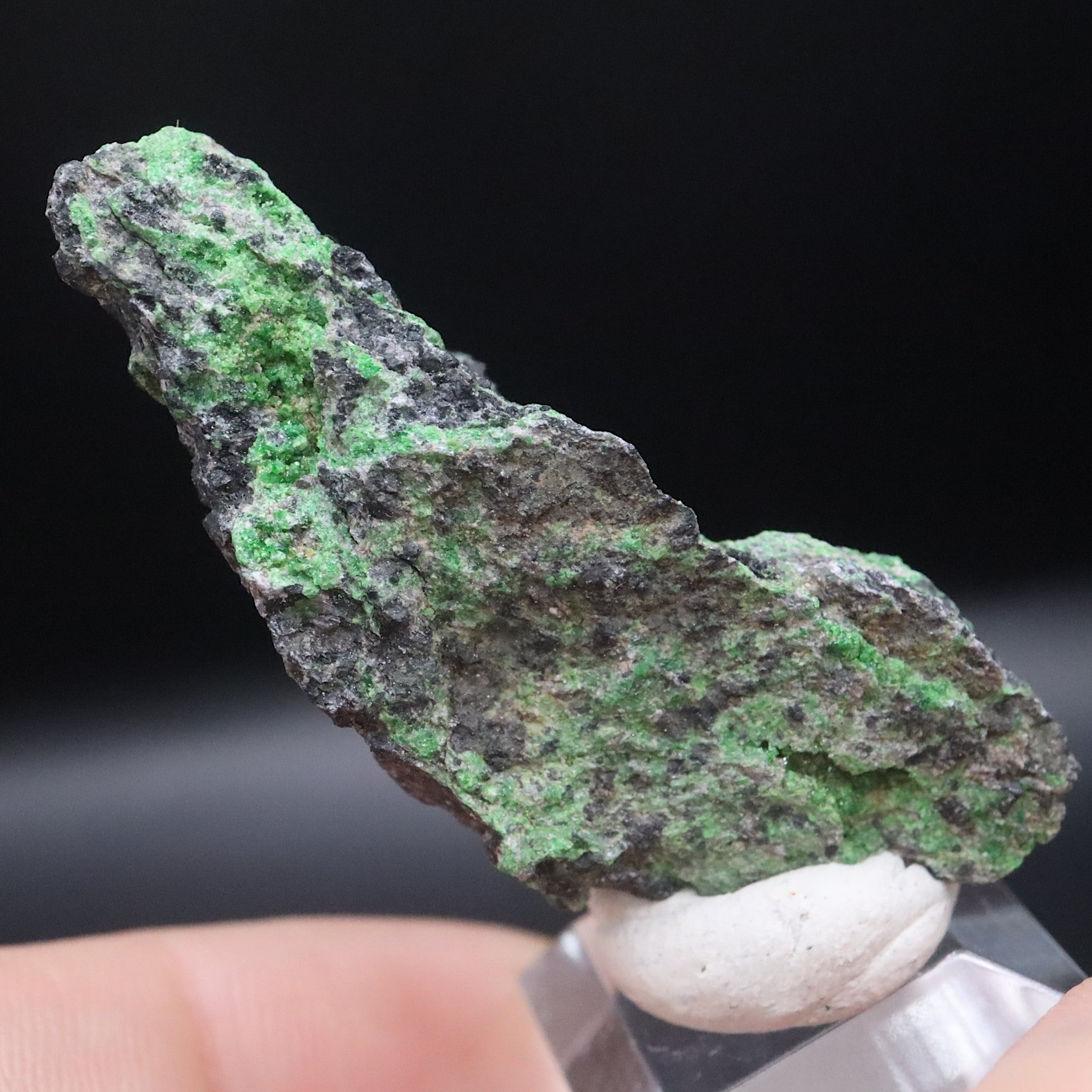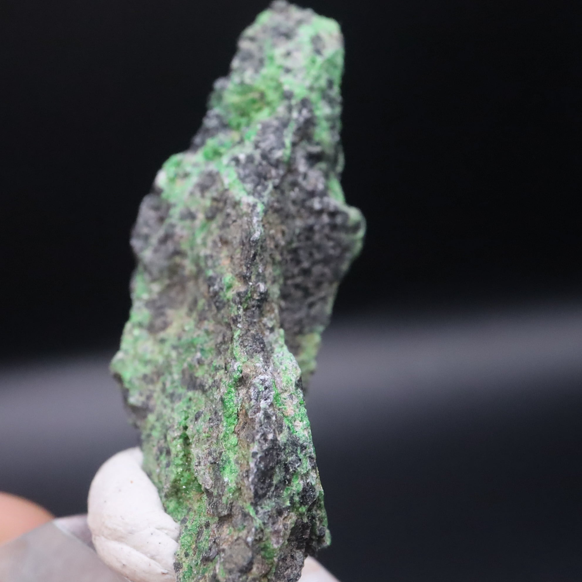 キラキラしている部分を見ると確かにそこにグリーンの鮮やかな結晶が見えます。