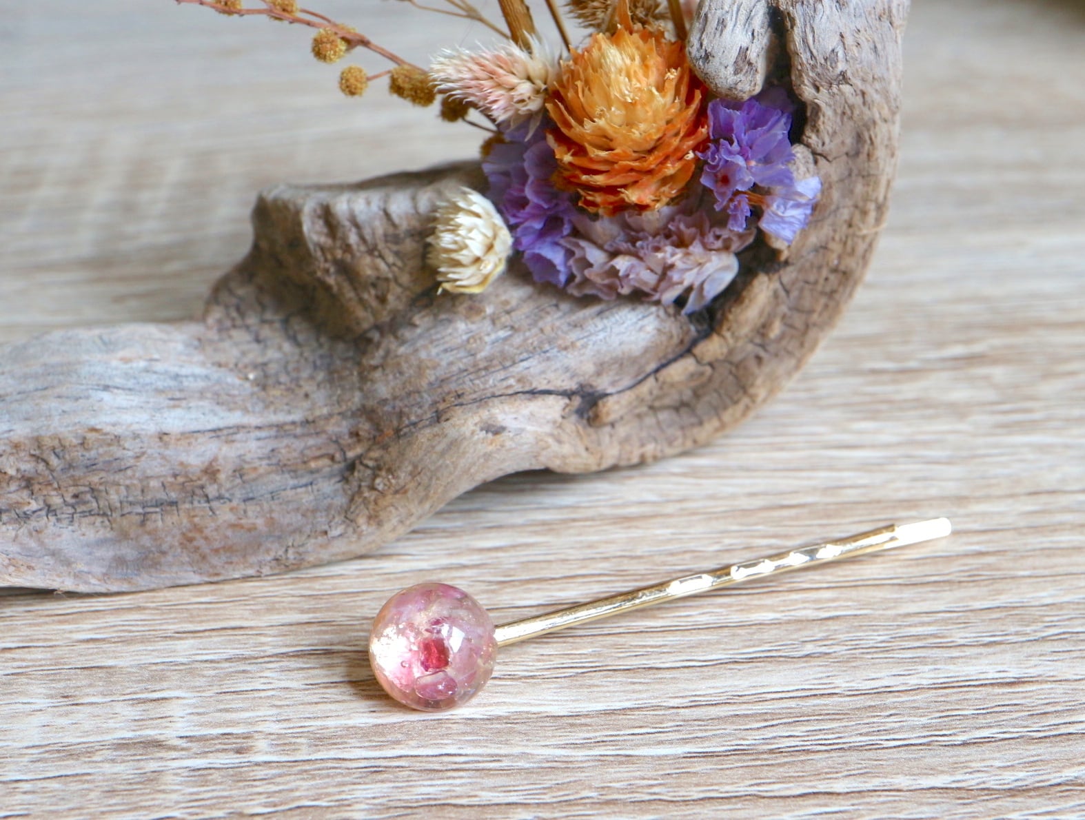 恋する ピンクトルマリン ドーム♡ ヘアピン まる 天然石 レジン