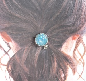 素材: アクアマリン、ホログラム、レジン樹脂、ビーズ、ヘアゴム