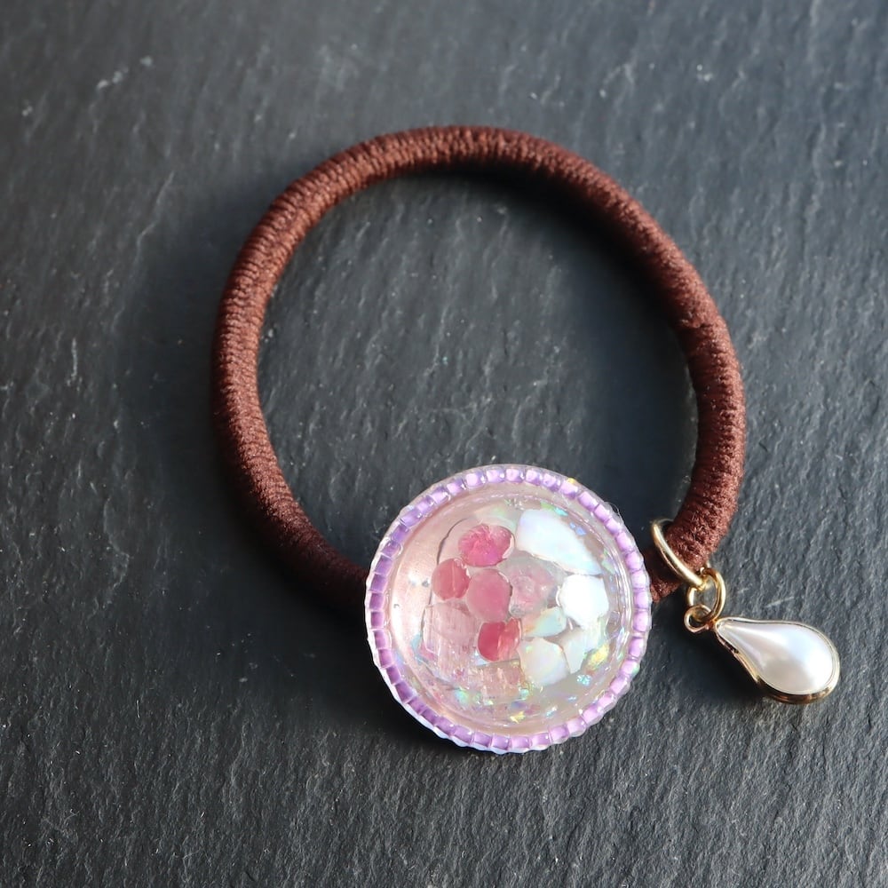 ピンク トルマリン オパール 【石のきもち】【10月誕生石】 パープル ビーズ レジン ホログラム ヘアゴム 茶 天然石 誕生石 原石 電気石