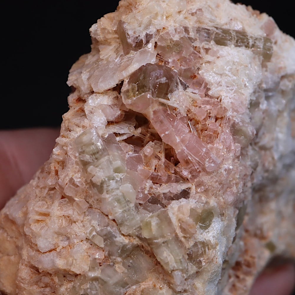 薄めカラーのグリーンとピンクの結晶が見えます。